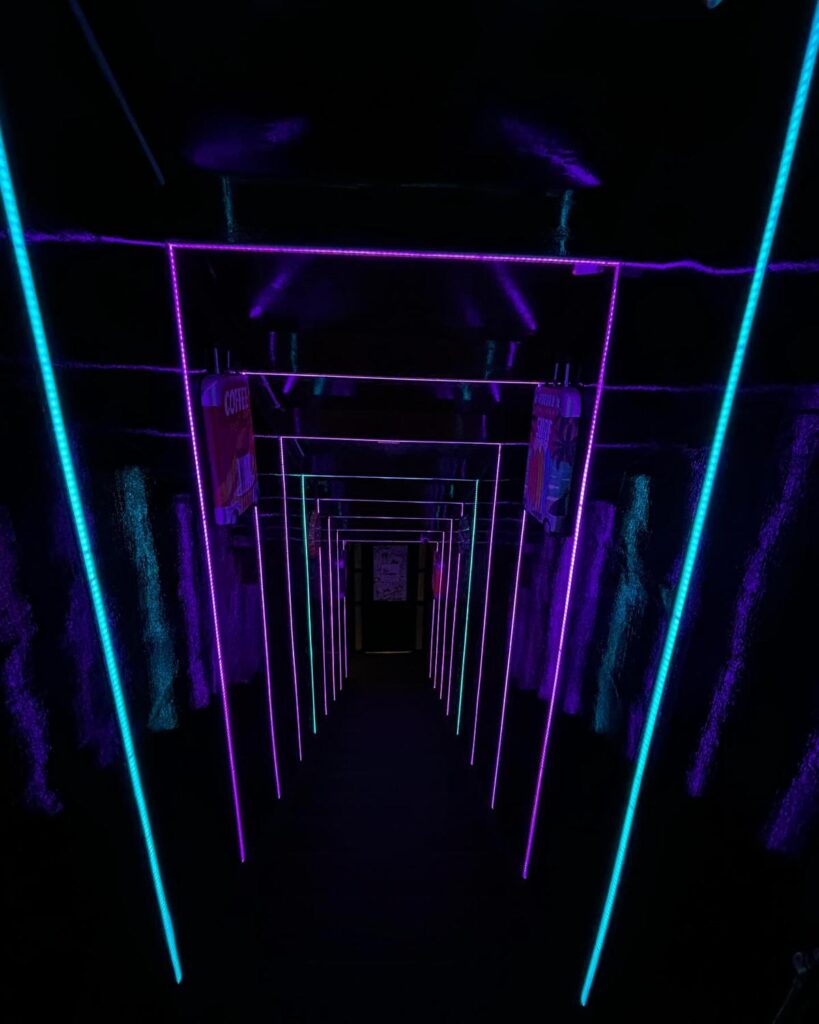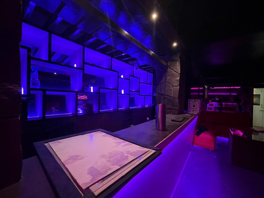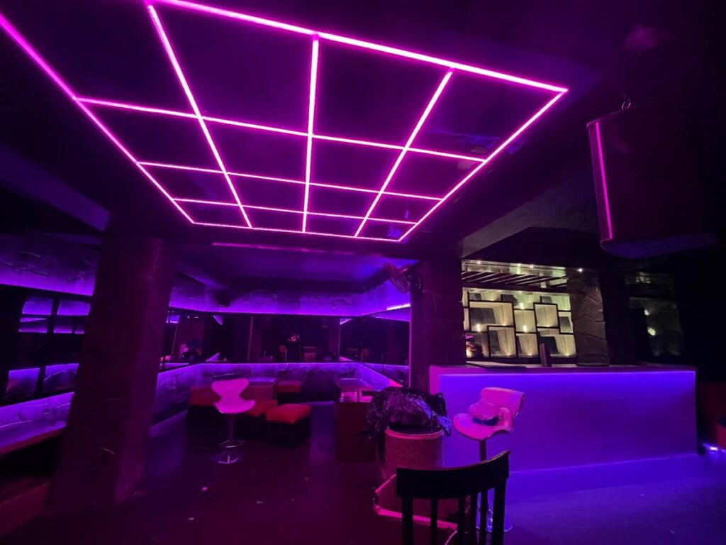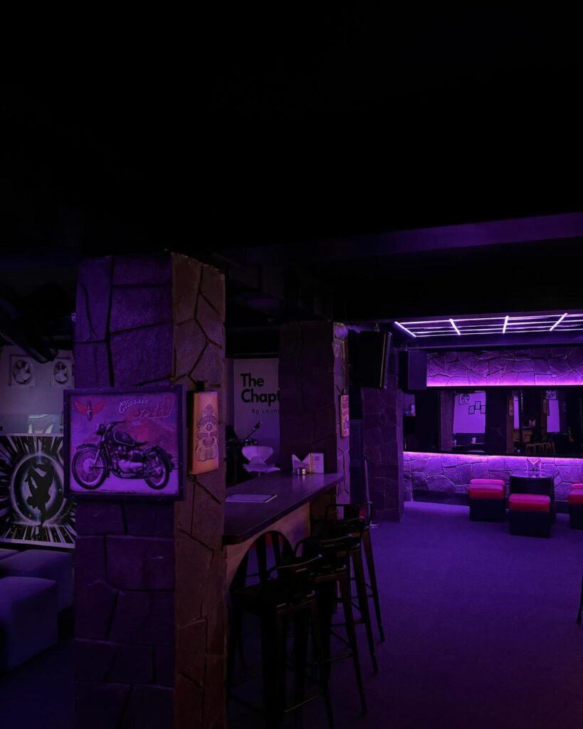 The Chapter, Gangtok - for the Chapter Lounge Bar , we designed and supplied a complete lighting solution inspired by an urban neon bar theme. Through programmable and color changing lighting and ambient accents, we created a bold,immersive atmosphere-from the vibrant entry tunnel to the glowing ceiling grids-enhancing the interior and elevating the nightlife experience .